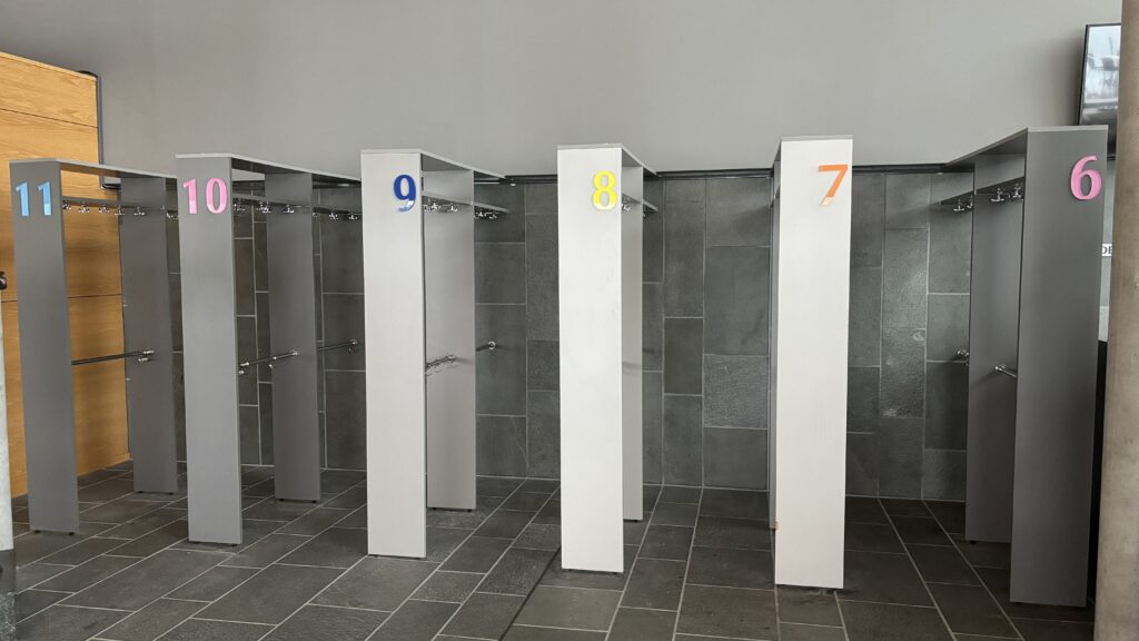 Klesstativ til bruk på eige ansvar ved resepsjonen i foajeen. Her finn du òg toalett og stellerom.